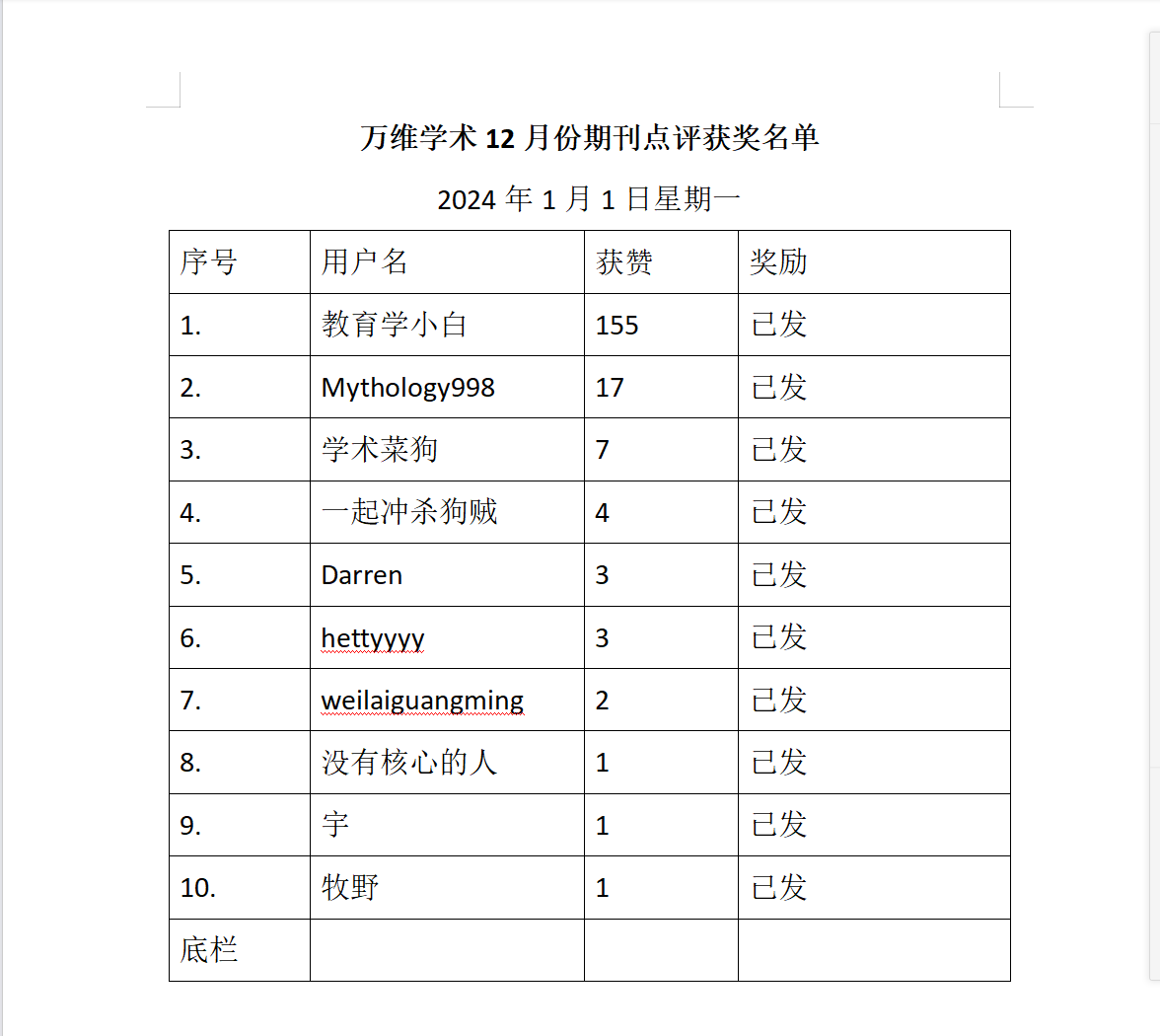 万维学术12月份期刊点评获奖名单!